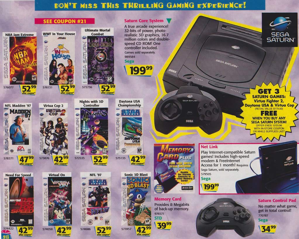 The Saturn was the first console that I bought with my own money with my very first paycheck from my very first job. it was a shock to most gamers that Sega released the Saturn early, as the industry expected it to come out later on in the year!