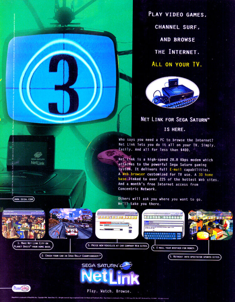 What’s less well known about the Saturn was how it pioneered console internet gaming. People often attribute the Dreamcast for making big strides in this field, but Dreamcast was not the first console to have internet functionality. It was only the first console equipped out of the box to connect to the internet. The Saturn did not have a modem built into it like Dreamcast, but a Saturn modem called the Netlink was released later on that included a mouse, keyboard, and internet browser, and enabled online multiplayer with any of five compatible games. Sega released special Netlink enabled versions of Daytona USA Special Championship Circuit, Cyber Troopers Virtual-On, and Sega Rally Championship, while Duke Nukem 3D and Saturn Bomberman had Netlink multiplayer functionality built-in, a feature many owners of the latter two games probably didn’t even know was there for a long time. Japan also had its own Saturn Modem available separately with all the same features and a wider variety of compatible games. Saturn essentially came the closest of any console until Dreamcast to having all the internet functionality that any computer had. Sega had also put together a prototype model of a Saturn with the Netlink modem built into it called the Pluto, but this was never released to retail. However, at least two fully functional prototypes of the Pluto exist in the wild and are often displayed at retro video game conventions.