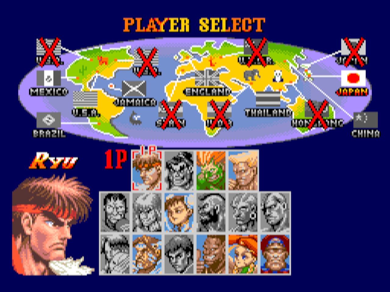 Two fighting games from later in the Genesis’s life, Mortal Kombat 3, and Virtua Fighter 2, were also split into two separate ROMs each for their Sega Channel release. In this case, half of each games’ characters were accessible in one ROM while the other half was only accessible in the other, making certain match-ups impossible in these Sega Channel conversions. The Sega Channel version of Super Street Fighter II: The New Challengers, was not split into two different ROMs. Instead, it just left half of the characters and their stages completely unavailable. This is the only version of Street Fighter II in which you cannot play as Ken, Zangief, E. Honda, or Dhalsim, as weird as that sounds.