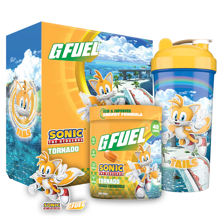 G FUEL and SEGA have teamed up again for another Sonic franchise flavor, this time inspired by Tails! Dubbed Tornado, the flavor is Orange Creamsicle and comes in a fancy collector’s box complete with a Tails shaker and sticker.