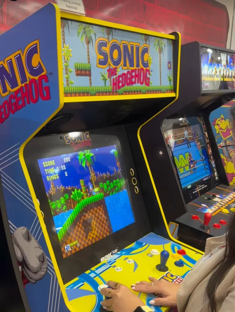 EDIT: A video from Mighty Comics and Collectables has surfaced on YouTube with the host, Laurence, having been present at Toy Fair 2026. He shows off the Arcade1Up booth and the Sonic the Hedgehog cabinet from more angles. He’s also asked more questions about the cabinet to get more information about it. The Supreme cabinets, including this one, will feature stereo speaker grills and light up marquees and coin doors, with the latter just being for decoration. The artwork on the cabinet and the included games are all still pending approval from Sega, so this could be a very different cabinet by the time it comes out, or it may not come out at all. Only time will tell.