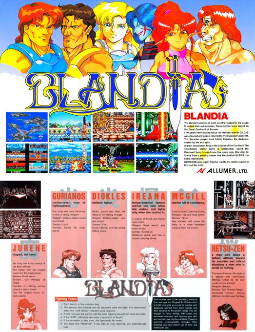 "BLANDIA" is a fighting game released by ALLUMER in 1992.