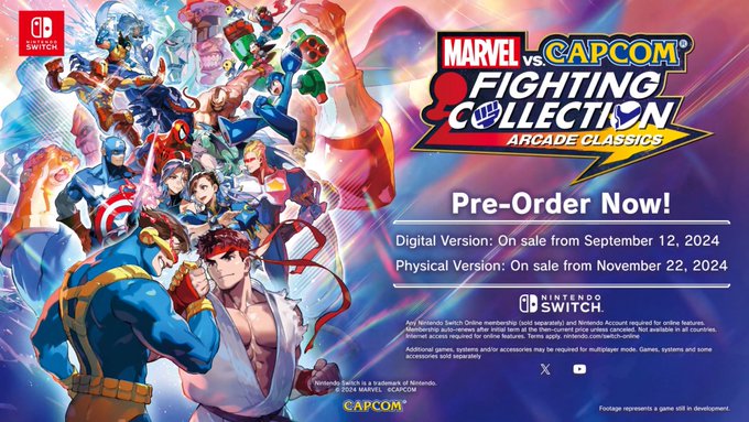 Pre-order MARVEL vs. CAPCOM Fighting Collection today!Dive into an action-packed lineup consisting of seven unique titles, including heavy hitters like X-MEN VS. STREET FIGHTER, and MARVEL vs. CAPCOM 2 New Age of Heroes. The collection also includes the rare beat 'em up game, THE PUNISHER.Get hyped as the high-flying action of MARVEL vs. CAPCOM Fighting Collection: Arcade Classics hyper combos its way onto Nintendo Switch on September 12th digitally and November 22nd physically!