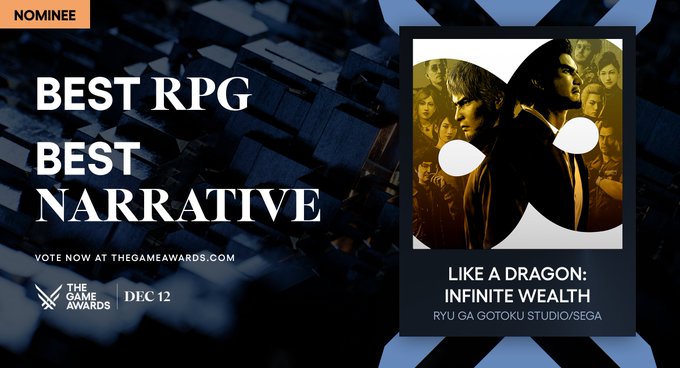 Like a Dragon: Infinite Wealth got TWO nominations in The Game Awards 2024! 🐉