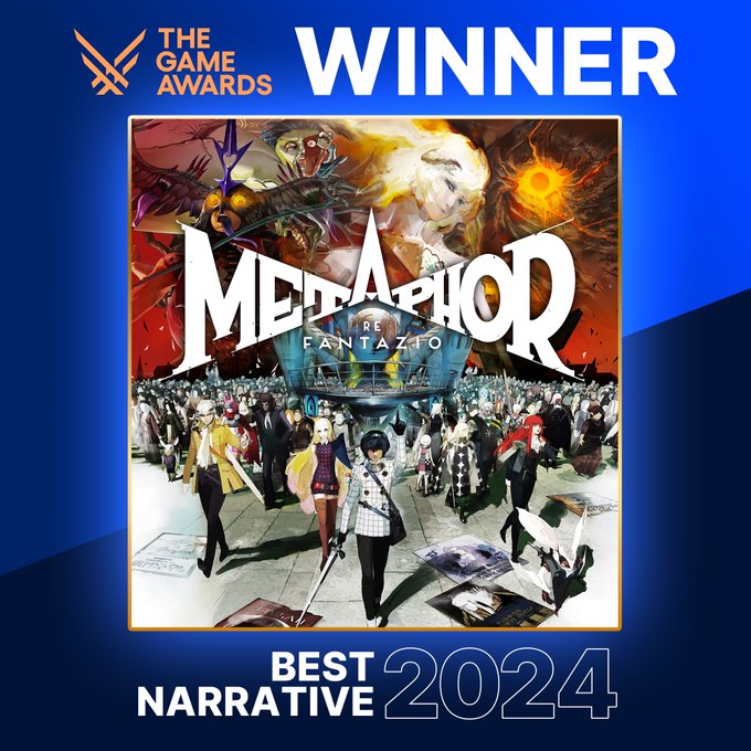 Metaphor: ReFantazio has won THREE awards, including Best RPG, Best Narrative, and Best Art Direction from The Game Awards! ✨🏆🎊