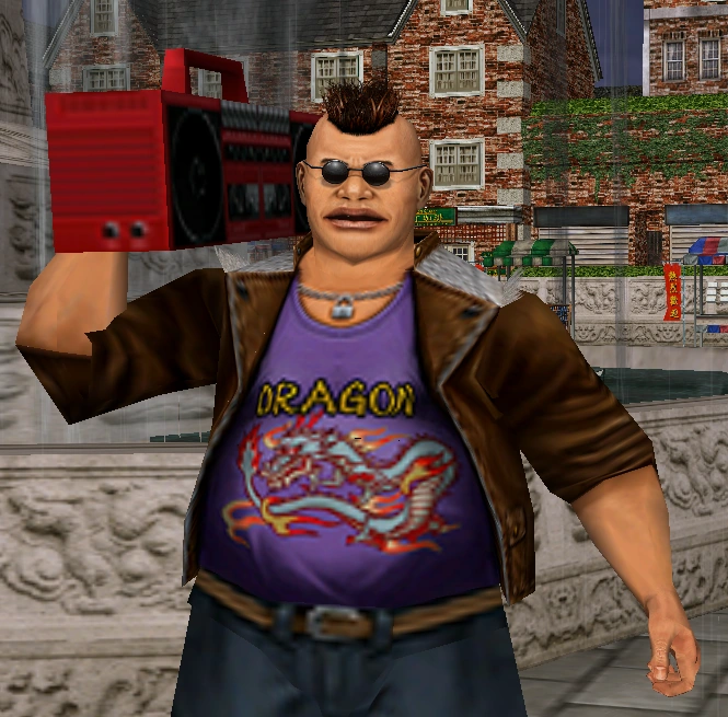 Nah, he looks like he fits right in with the street fighters and arm wrestlers from Shenmue II, except with a contemporary polygon