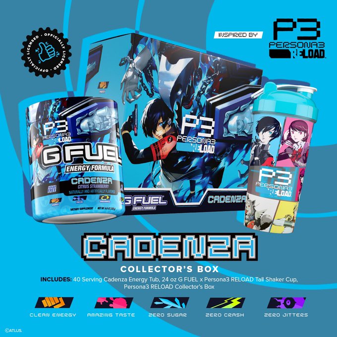 The P3R x #GFUEL "𝘾𝘼𝘿𝙀𝙉𝙕𝘼" Collection is now BACK IN STOCK!