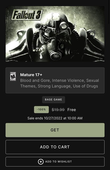 Article : https://www.pcgamer.com/fallout-3-is-free-on-the-epic-games-store/