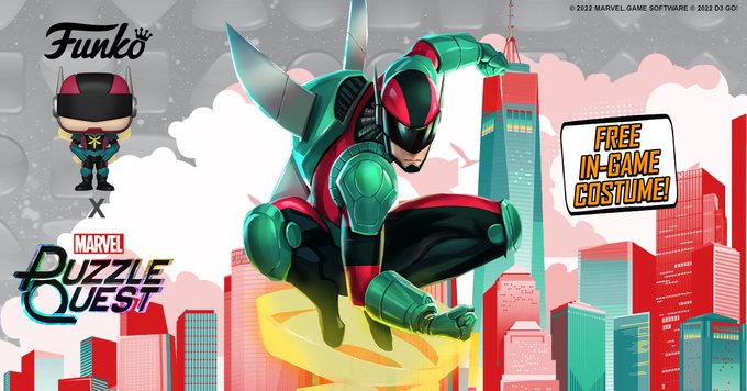 Before it swings away, be sure to pick up the brand new Original Funko Hornet costume + 1 Spider-Man (Classic) cover for FREE in Marvel Puzzle Quest