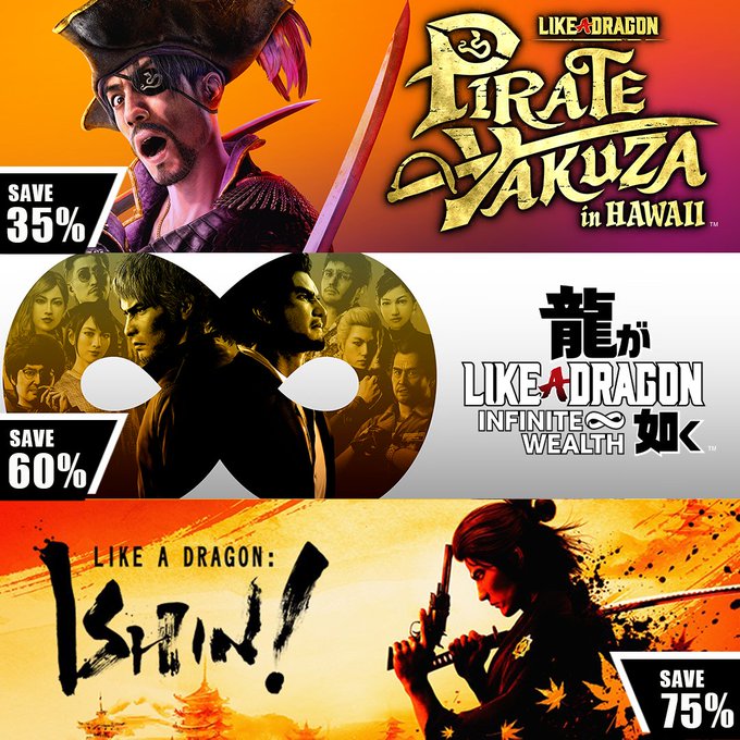Featuring🏴☠Like a Dragon: Pirate Yakuza in Hawaii (Deluxe Edition) - 35% OFF🤙Like a Dragon: Infinite Wealth (Standard & Ultimate Editions) - 60% OFF🏯Like a Dragon: Ishin! (Deluxe Edition) - 75% OFFAnd more!