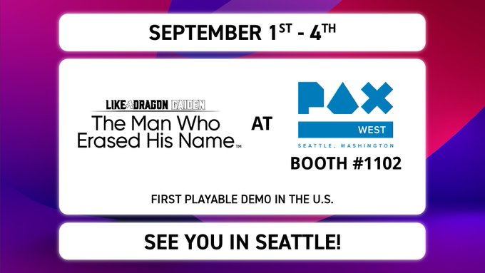 Experience the first public hands-on for Like a Dragon Gaiden: The Man Who Erased His Name in the U.S. at PAX West 2023 and get an exclusive button!