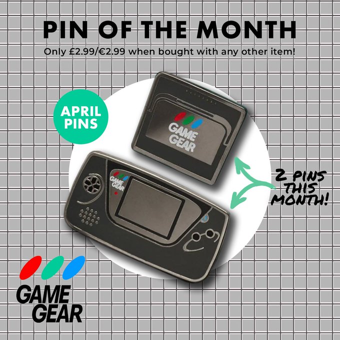 Celebrate everyone's favourite colour handheld, the Game Gear with these two awesome pins - just £2.99/€2.99 when purchased with any other item in the SEGA Shop this month!