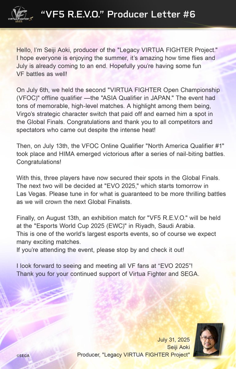 “Virtua Fighter 5 R.E.V.O.” Producer Letter #6✉
