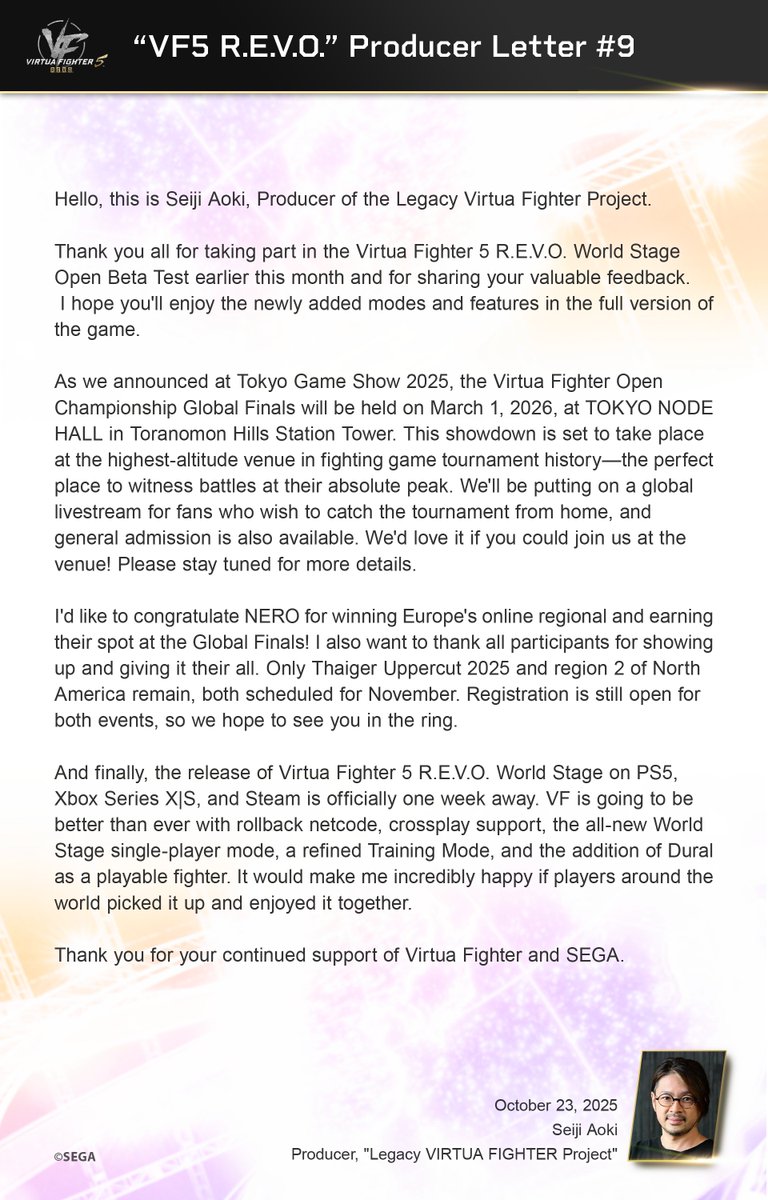 Article: https://segabits.com/blog/2025/10/30/enter-the-world-stage-virtua-fighter-5-r-e-v-o-world-stage-now-available/