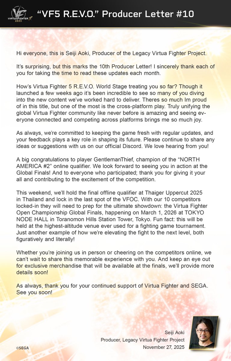 “Virtua Fighter 5 R.E.V.O.” Producer Letter #10✉