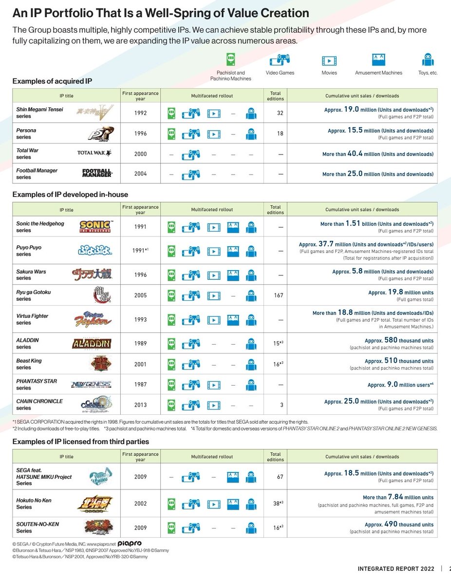 Lifetime sales totals of SEGA IP: