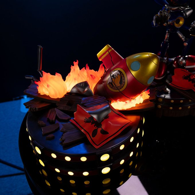 It comes with a larger base depicting Tails’ rocket engulfed in flames, which Metal Sonic stole to follow Sonic and Tails to White Park Zone.