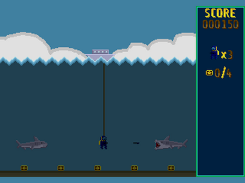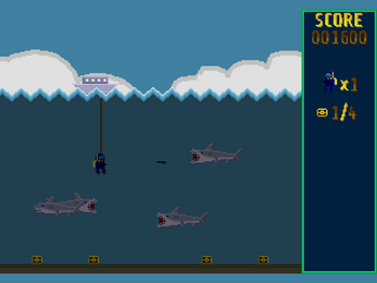 A simple underwater game for the sega mega drive/genesis console, where you control a diver to help collecting treasures underwater while avoiding sharks, and bring them back to the boat. there are 5 treasures on the seabed, but beware: one of the treasures is a trap, and you lose a life if you collect it! lose all of the three and its game over!