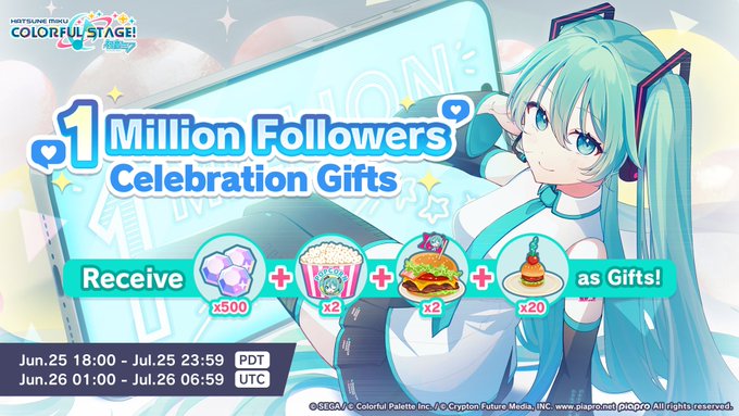 HATSUNE MIKU: COLORFUL STAGE! has Reached 1,000,000 total followers across all channels!