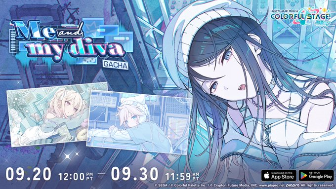 The "Me and my diva Gacha" is now available! 🎸Pull the new Ichika, Saki, and Len cards today~ The banner will run until Sept. 30, 11:59 AM (PT)/ 18:59 (UTC) ✨