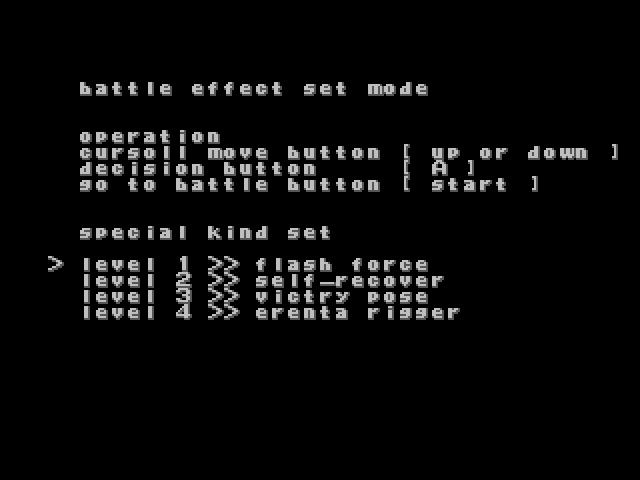 Here's a hidden "battle effect set mode" in RENT-A-HERO NO. 1 for Dreamcast.
