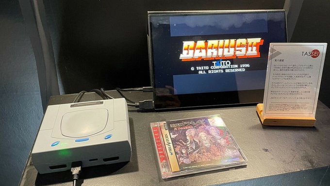 The unit at the show – which is, of course, entirely unofficial and not endorsed by Sega – was shown running Taito's Darius II.
