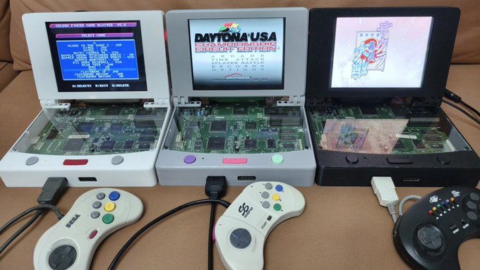 There's a flood of these hacked systems coming out of China these days, often with transparent cases which show off the Saturn's internals. The idea is that by using a Saroo to load games, you don't need the CD drive, effectively making it a "Saturn Mini" due to the reduction in height. Some systems even come with bolt-on LCD monitors.