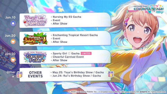 Let's take a look at the roadmap for June~ ☀- What Lies Beyond Guiding a Lost Child Event 🩺- Desperate Times?! Island Panic! Event 🏝- Let's Enjoy Together! SpoJoy Park Event ⚾Which event are you looking forward to?