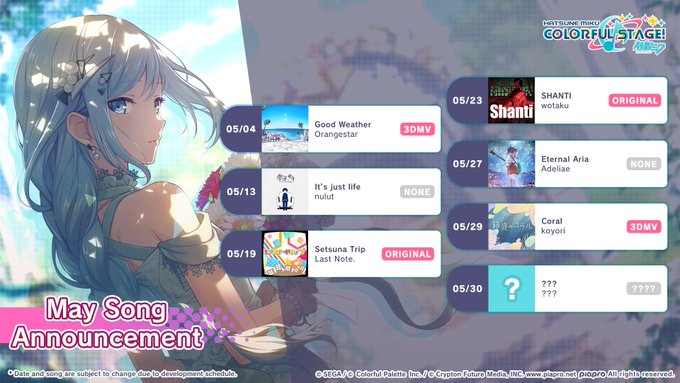 HATSUNE MIKU: COLORFUL STAGE! - May 2024 Song Announcement