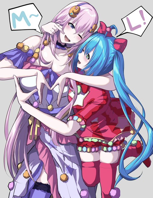 Hatsune Miku x Megurine Luka Fan Art by しろぬ