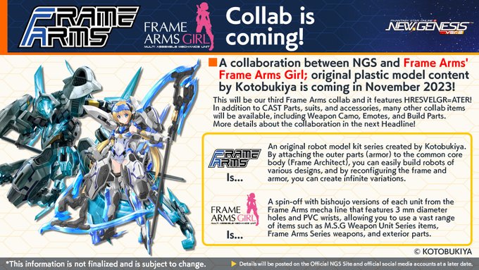 PSO2NGS is collabing with Kotobukiya as they roll out their original robot content FRAME ARMS and FRAME ARMS GIRL!