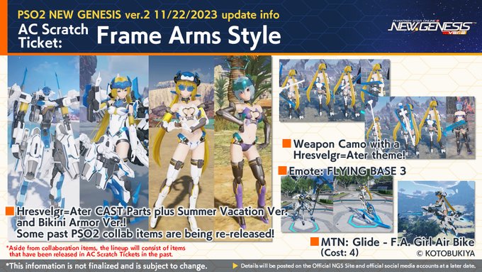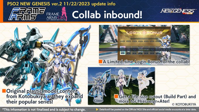 PSO2 NGS x Frame Arms and Frame Arms Girl Collab starts on 11/22 (PST)!