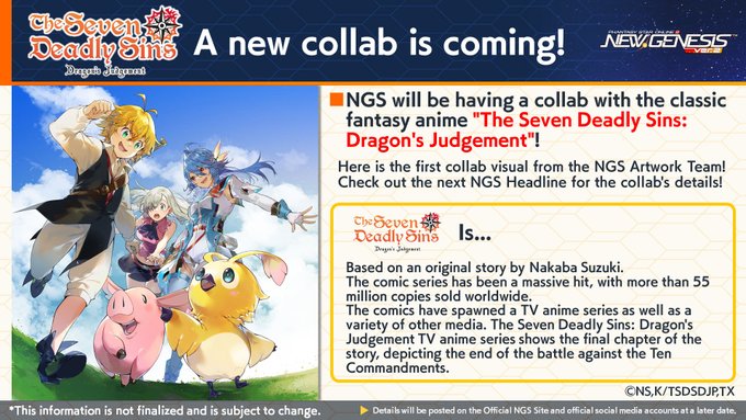 Announcing a Jan. 2024 collab between the classic fantasy anime The Seven Deadly Sins: Dragon's Judgement & NGS!
