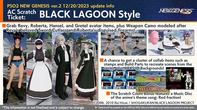 PSO2NGS - The new AC Scratch Ticket: BLACK LAGOON Style is coming on 12/20!