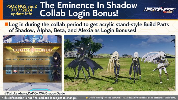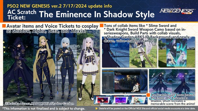 Phantasy Star Online 2 New Genesis Global x "The Eminence In Shadow" Anime Collaboration