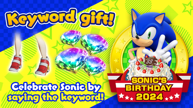 Say the keyword 33rdSonicAnniversary! in NGS during the period to get collab item gifts!