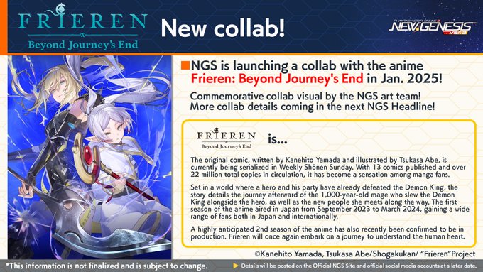 It features a collab visual of Manon and Frieren to celebrate the collab by the NGS art team! Check out the next Headline for more details! Stay tuned for more details!