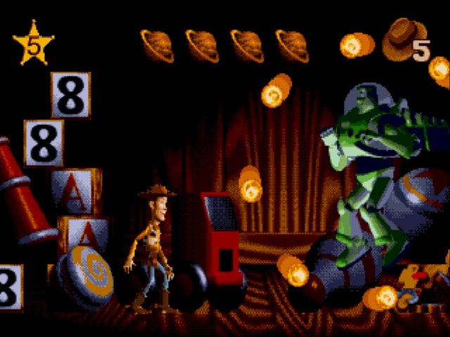 Toy Story is an action platformer game for the Sega Genesis. Based on a movie with the same title.