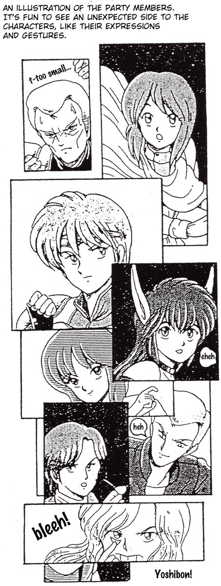 A vertical Phantasy Star II character manga panel by Yoshibon, character designer for II and IV.