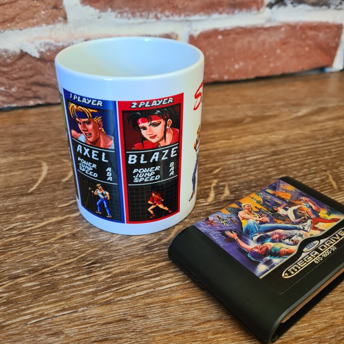 Pay homage to the exploits of Axel, Blaze & Adam with our Streets of Rage ceramic mug featuring pixel art from the original SEGA Mega Drive classic!