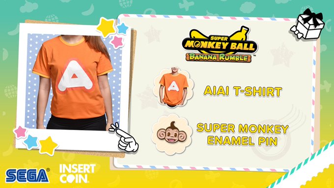 To celebrate the Super Monkey Ball Banana Rumble launch, our friends at Insert Coin Tees are giving you a chance to win this a-peel-ing AiAi t-shirt and enamel pin! 🐵