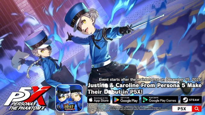 A new trailer for Persona 5: The Phantom X has been released, revealing the addition of Velvet Room attendants Caroline and Justine from Persona 5 to the game. This will be the first content added to the game in all regions simultaneously, and will coincide with the half-year anniversary of the Western and Japanese release.