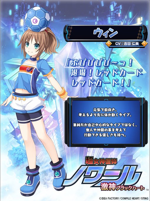 Wyn is a vigorous and positive soccer girl. She's simple but not selfish, even if they're stranger or friend, she always cares about them, that's her kindness.