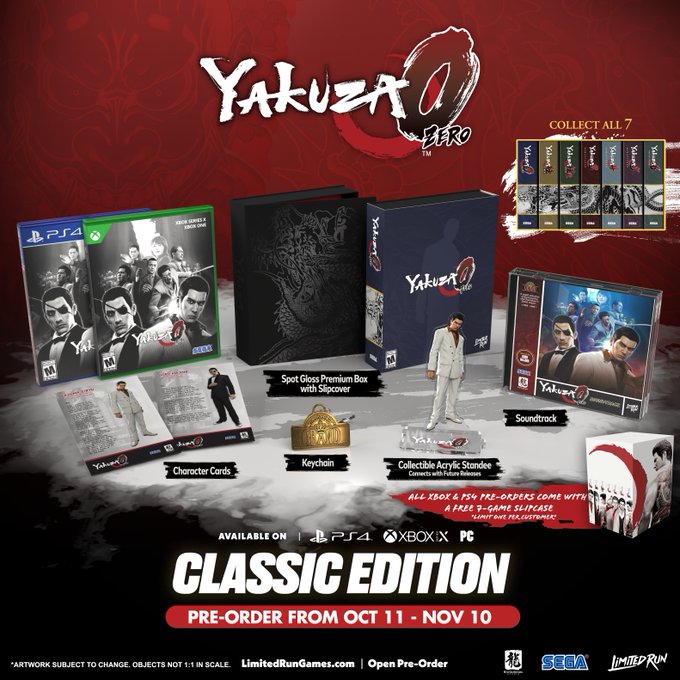Alongside standalone editions, Yakuza 0 will receive a premium Classic Edition, which includes a soundtrack CD set, acrylic standee character cards, and more!