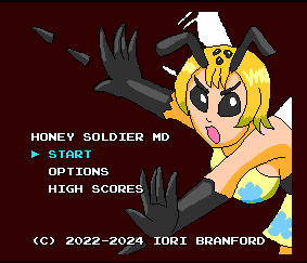 In 2022 I made Honey Soldier for the Gunner Parade game jam. It targeted modern PC and mobile platforms, but the presentation was loosely inspired by 90’s console games, without regard for their actual hardware limitations. Still, I had been Genesis-curious for some time, and two years later, I happened to notice SGDK was in version 2.00. As I looked over the many features and conveniences it offered, the idea of porting Honey Soldier began to form.