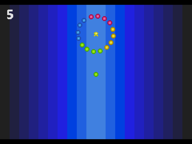 This is a sega mega drive demake of a one button mobile game titled  "Color Switch".  try to score as many points as possible! don't touch the wrong matching color or it's game over!