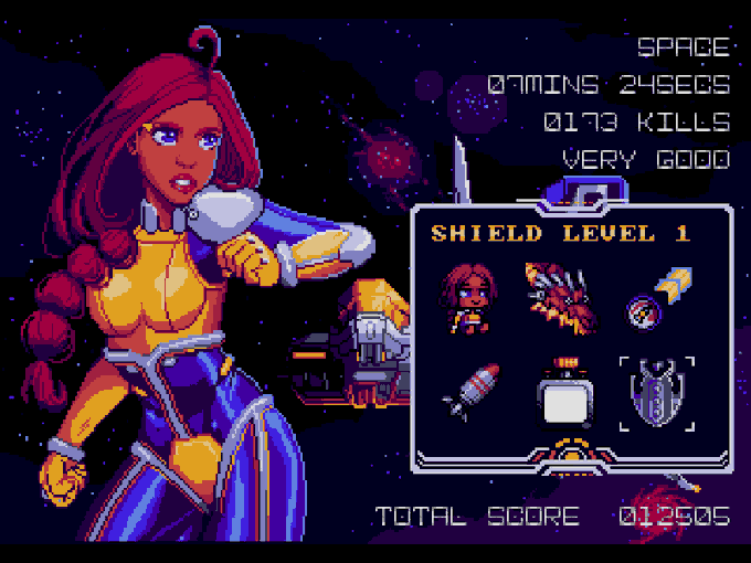 Irena Genesis Metal Fury, henceforth Irena for short, is an all new indie scrolling shooter that’s been in active development for Genesis from White Ninja Studio since before launching their Kickstarter, which succeeded in reaching its goal. They ended up raising €62,240, almost double its goal of €35,000. (About $40,708.96 USD, adjusted for inflation) This was thanks, in part, to an impressive demo they worked on and launched simultaneously with the Kickstarter. Thousands of Genesis shooter fans downloaded and played that demo and were so impressed they couldn’t wait to fund its completion.